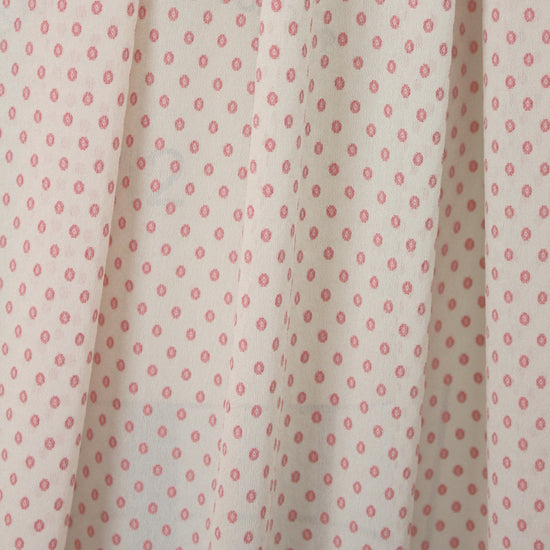 This is a lovely semi-sheer viscose crepe from Derek L@m, a clipped weave dot in red and ivory (PANTONE 17-1545, 11-0606...ish). Technically the side that doesn't show the fringes where it is clipped is the right side, but many prefer the other side. We show both sides in the photos below. It is very lightweight and drapey and is perfect for a blouse, top, tunic, scarf, dress, etc. Dry clean, or test first if you wish to hand wash and hang to dry. .66 yds.