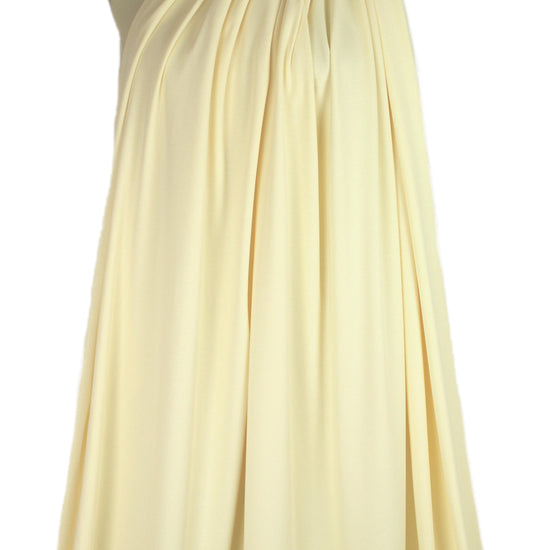 This 100% organic cotton interlock knit is a wonderful and substantial medium-light weight knit, opaque with a soft texture and a bit of body in the drape. It has about 40% stretch in the width only with nice recovery. Perfect for tees, tops and tunics, dresses, skirts, loungewear, baby and kids clothing, etc., and the color is a lovely pale, butter yellow (PANTONE 12-0721-ish but lighter). Eco-friendly and sustainable, Oeko-Tex certified. Hand or machine wash, cold water, and hang or lay flat to dry. No bleach. 1.75 yds.