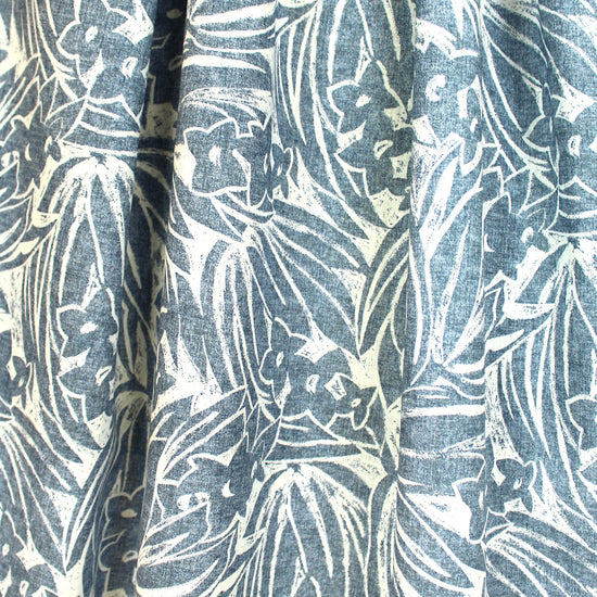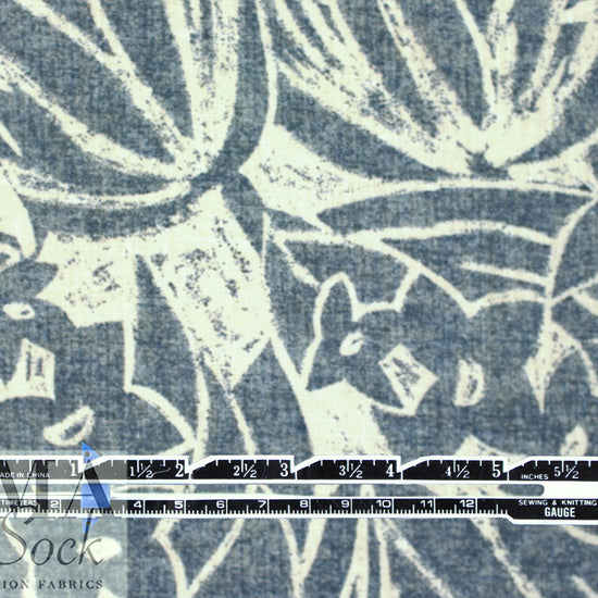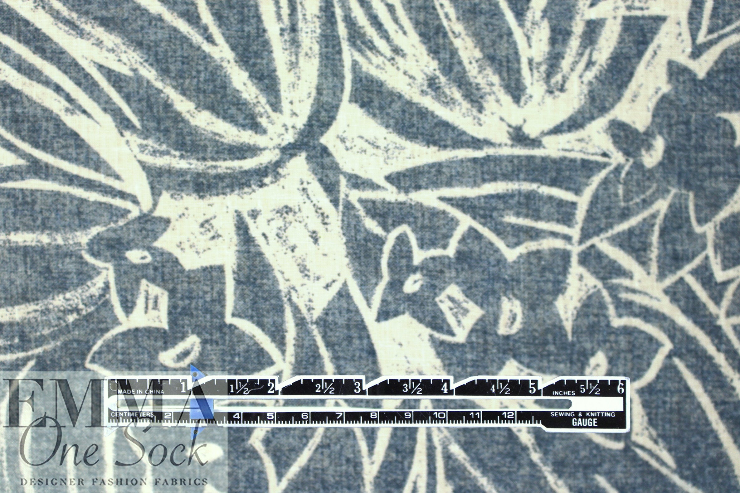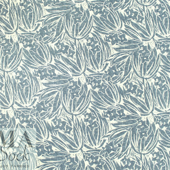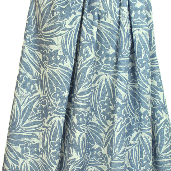 From Italy, this gorgeous quality cotton/linen blend woven is lightweight, semi-opaque with some body in the drape. Oeko-Tex certified for non-toxic dyes and chemicals. The "woodcut flowers" print (12.5" repeat) features chambray blue and soft white (PANTONE 17-4027 but less saturated). It is perfect for dresses, skirts, shirt, top, tunic, etc! Some styles may need lining or layering. Hand wash cold, hang to dry (please test first), or dry clean. .5 yds.