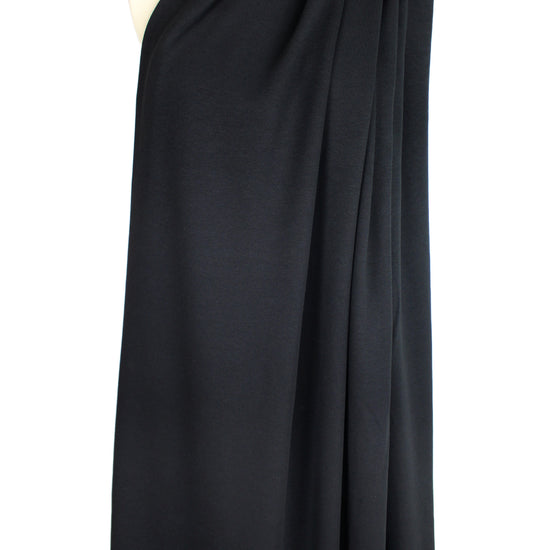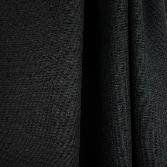 This is a wonderful organic cotton and Tencel blend stretch terry knit. It is opaque and drapey with a medium weight, 40% stretch widthwise and 20% lengthwise with great recovery. The plain knit stitch on the right side is soft and tightly woven, with a loopy, low pile terry on the other side. It is also Oeko-Tex certified for non-toxic chemicals and dyes. The color is a classic black and it is perfect for a robe, hoodies, casual separates, beachwear, loungewear, etc. Machine wash and tumble dry on low or hang to dry, do not dry clean. 1.75 yds.