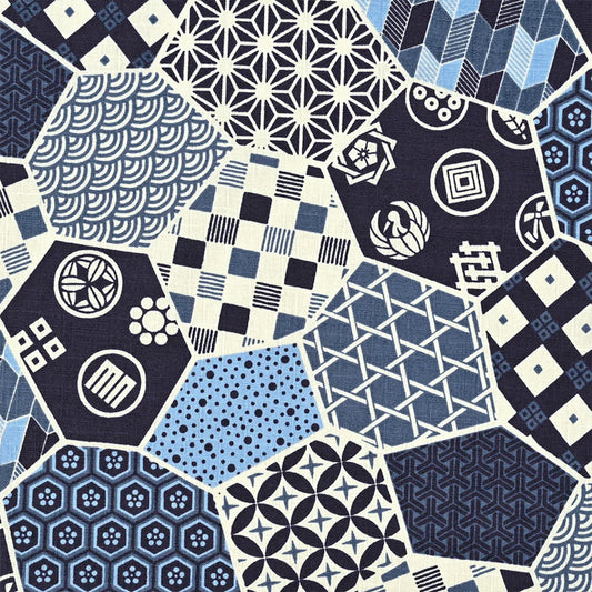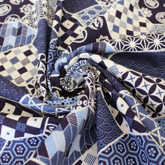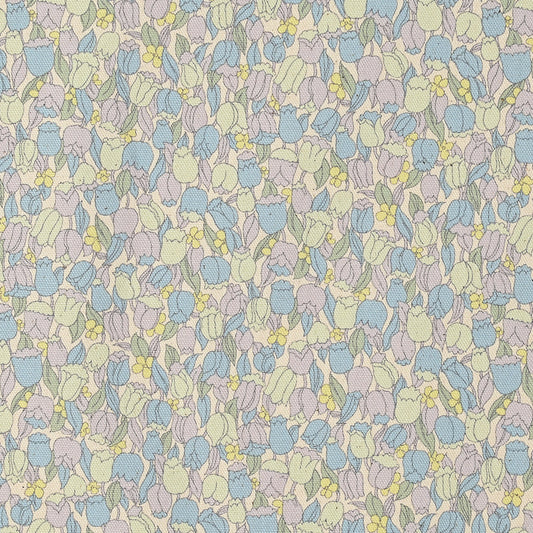 Dutch digital 'Millefleurs' cotton poplin - cream/blue