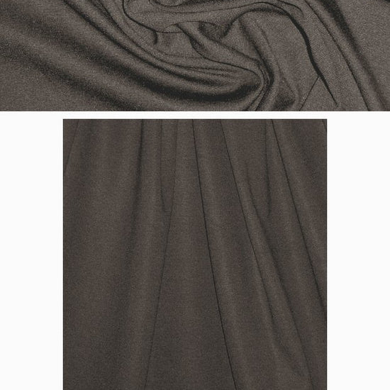 From Eileen Fisher, this high-percentage rayon blend Ponte 4-way stretch knit is a fantastic basic. The color is a very dark brownish gray (PANTONE 19-4205...ish), it's opaque, substantial, elastic with terrific recovery and a lovely drape with body. Excellent quality, and perfect for knit dress, knit suiting, leggings or skinny pants, body-hugging tops, etc. 35% stretch in the width and the length with great recovery. Dry clean or please test first if you wish to wash at home.