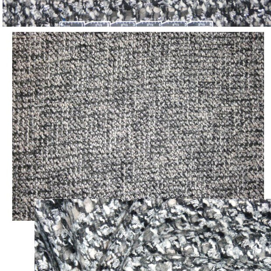 This Italian beauty is an exquisite wool blend boucle' tweed woven suiting with wonderfully soft and cozy texture and the same on both sides. The colors are black, shades of teal-tinted gray, winter white, and silver metallic. It's a perfect suiting/coating weight and much more luscious in real life! Make a fabulous Chanel-style jacket, coat, suit, cape, etc. Dry cleaning recommended. (Sells for $69.00/yd in NY.)