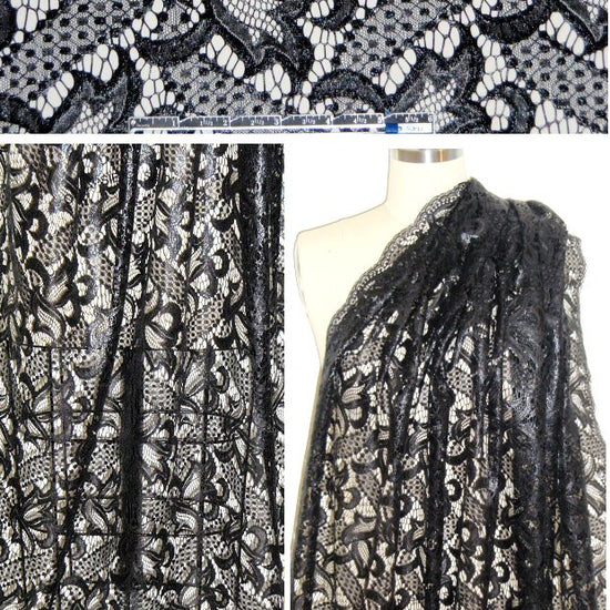 NY designer 'glazed' black fancy lace 1.125 yd