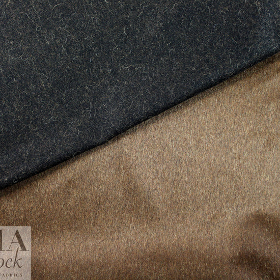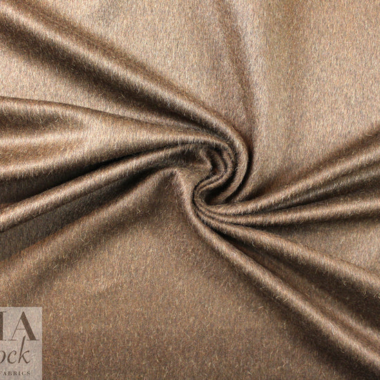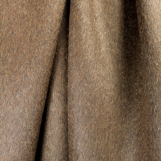 From Italy, this wool and alpaca luxury coating is exquisite! It has a very short-haired furry nap on the face and a flat twill weave on the reverse. The color is monk's robe brown (PANTONE 18-1048) and it is a soft and luxurious medium-thick coating, warm and cozy with body in the drape. Perfect for a jacket, coat or cape, it would work beautifully either lined or unlined (an unlined garment would need an edging as it will fray over time otherwise). It has a super-luxurious look that will take you through the colder months in style. Dry cleaning recommended.