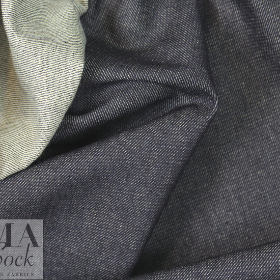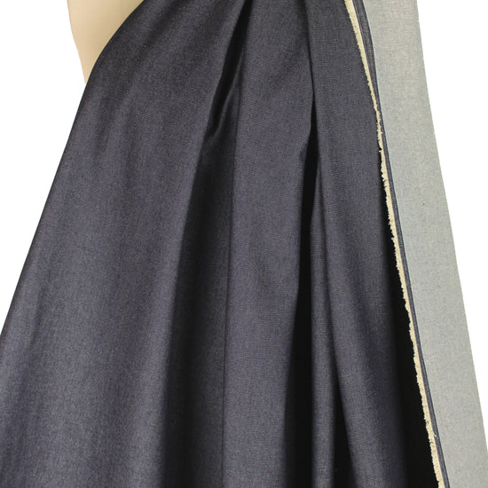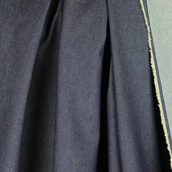 A fabulous quality 8.5 oz. organic cotton RAW denim, medium weight, no stretch. It is Oeko-Tex and GOTS certified. The color is classic dark indigo/blue denim with more noticeable white cross threads that make it look less intensely blue. Has a more firm drape but not stiff, perfect for jeans, jacket, topper coat, etc. Machine wash and tumble dry. Pre-wash separately. 2 yds.