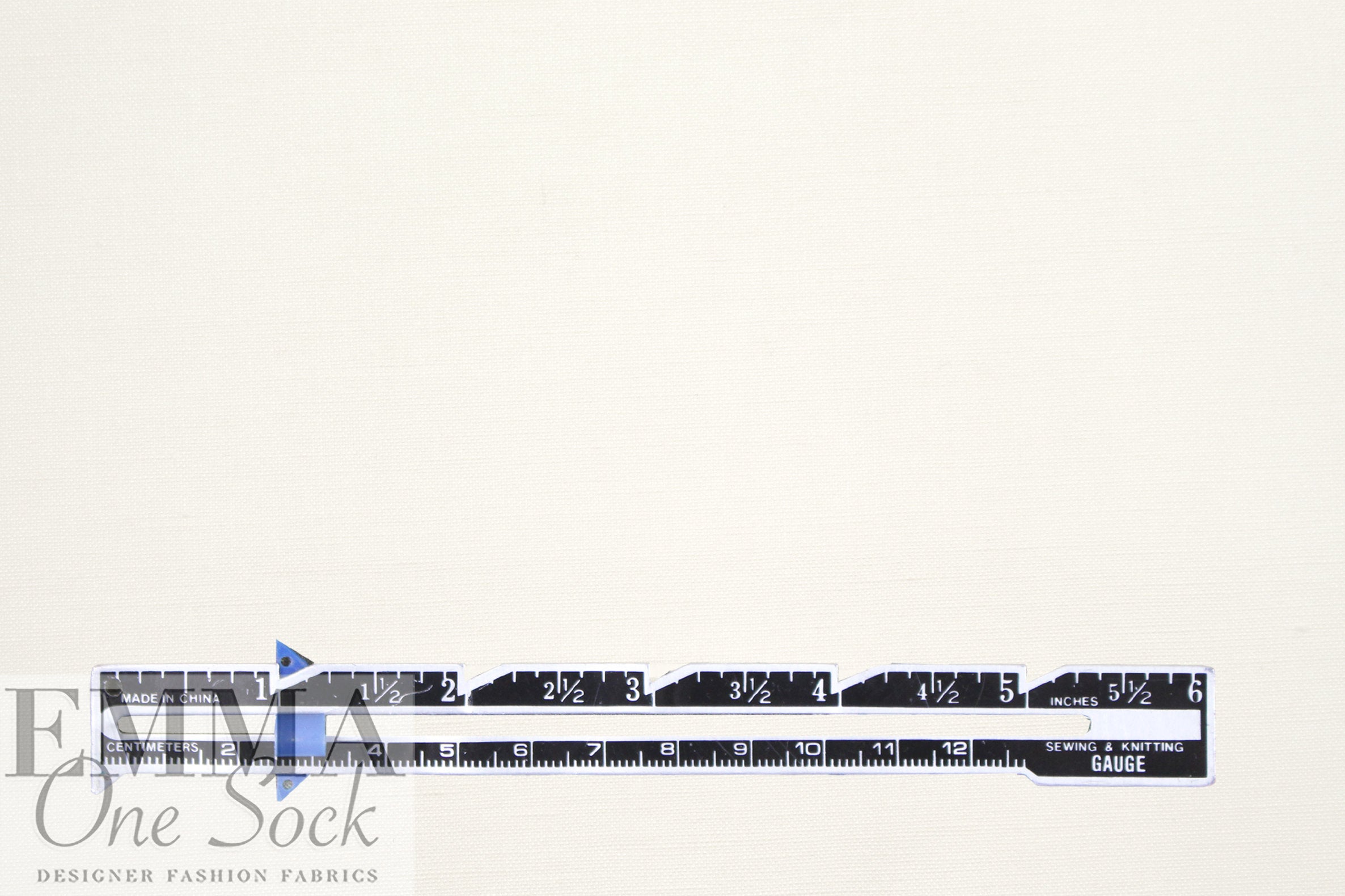 This is a fabulous linen/rayon woven with a subtle linen texture and classic look. It is an opaque, medium weight with body in the drape, and it looks the same on both sides. The color is light creamy ivory and it's a fabulous wardrobe staple that is perfect for pants, jackets, dresses, skirts, shorts, "safari" styles, etc. Hand or machine wash, hang to dry (please test first), or dry clean. (Please note: the last roll of this was called "soft white" but the new roll that we receive in last August 2022 is more creamy ivory.). 1.25 yds.