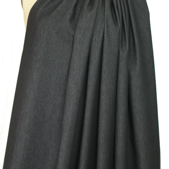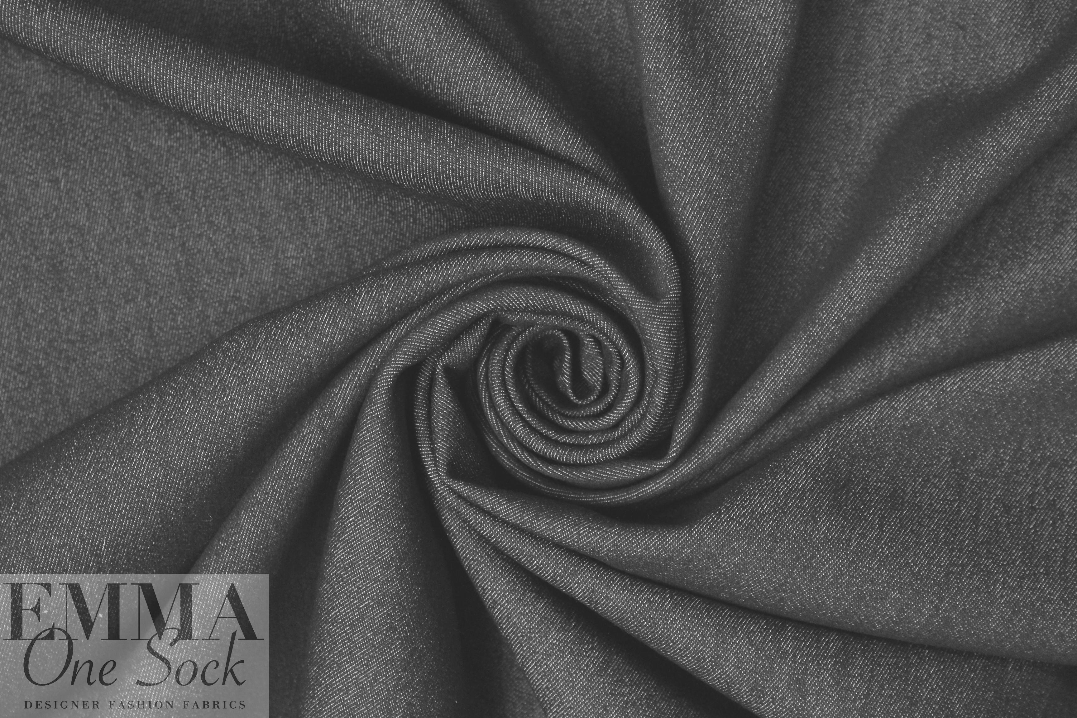 This is a fabulous cotton blend stretch denim, a medium-light weight denim that is perfect for any season! It's quite malleable and soft, as if it were pre-washed! 20% stretch in the width only with great recovery. The color is black, or off black due to the pale crossthreads. Fabulous for jeans, capris, jacket, skirt, skinny pants, etc. Pre-wash separately, dry on low.