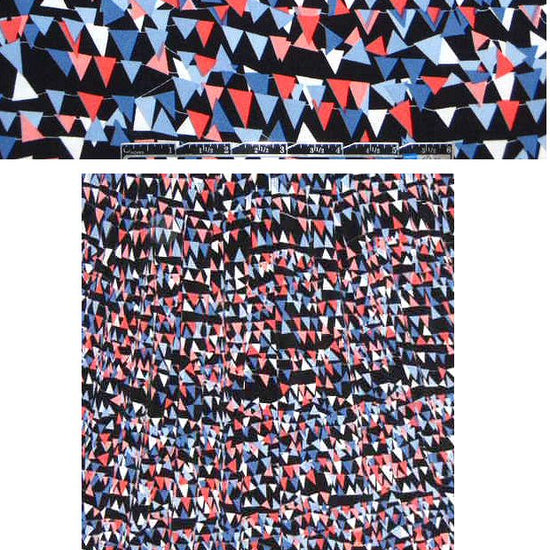 This is a poly/lycra knit with 2-way stretch (20% in the width only with perfect recovery), opaque yet very lightweight with liquid drape. The print is a fabulous digital kite tails graphic design in pretty tones of periwinkle, denim, bright coral, coral pink, black and white (PANTONE 16-4021, 17-1656, 15-1621, etc.). Easy care, perfect for tops, tees, tunic, dress, maxi dress, swimwear, etc. Hand or machine wash cold, hang to dry. 2 yds.