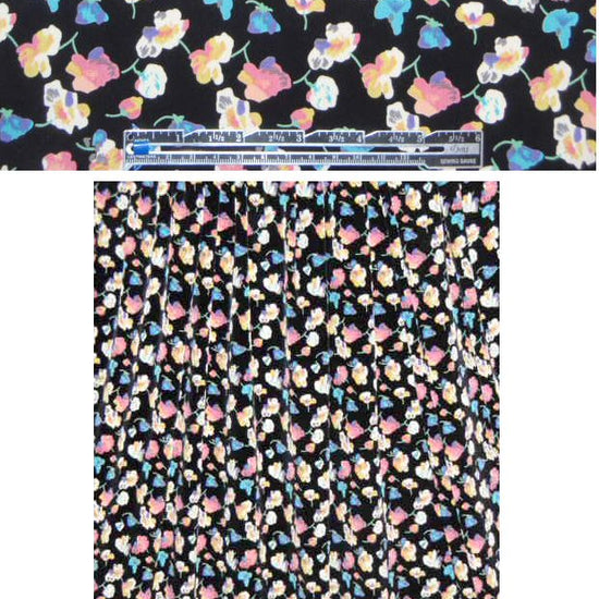 floral poly crepe de chine - black/pink/teal 1.25 yds