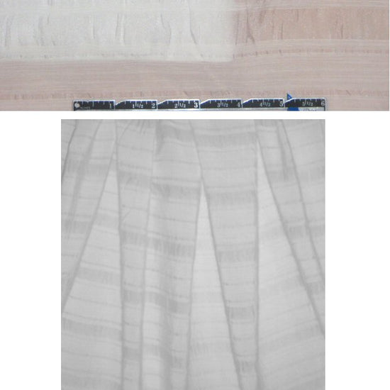 A wonderful novelty woven from J'Envie, this stripey voile weight has a 3.5" stripe repeat in white on white. Some areas are more sheer, some more opaque. It has a somewhat crisp, floaty drape, and since it has no stretch, it can be cut in either direction. So pretty for a summery top, tunic, blouse, etc. Some styles may need lining or layering. Dry clean or test first if you wish to try hand-washing. Hang to dry. 1.75 yds.