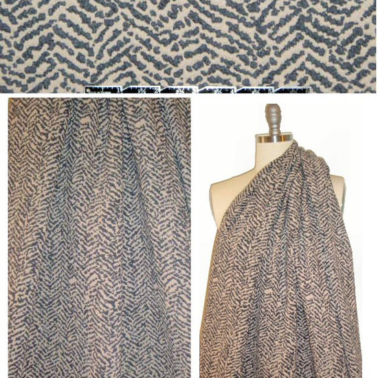 From a wonderful West Coast designer, this is a smart and modern textured ponte with a dimensional deconstructed herringbone design in graphite and khaki (PANTONE 18-4005, 16-1210). The fabulous trapunto-like texture is more apparent in real life, and the reverse is a solid khaki, more flat and not meant to be seen. It has about 20% stretch in the width, 15% in the length, but is very stable. Use for any garment calling for a doubleknit, thick knit, ponte, scuba or neoprene. Hand wash cold, hang or lay flat to dry. 2.125 yds.