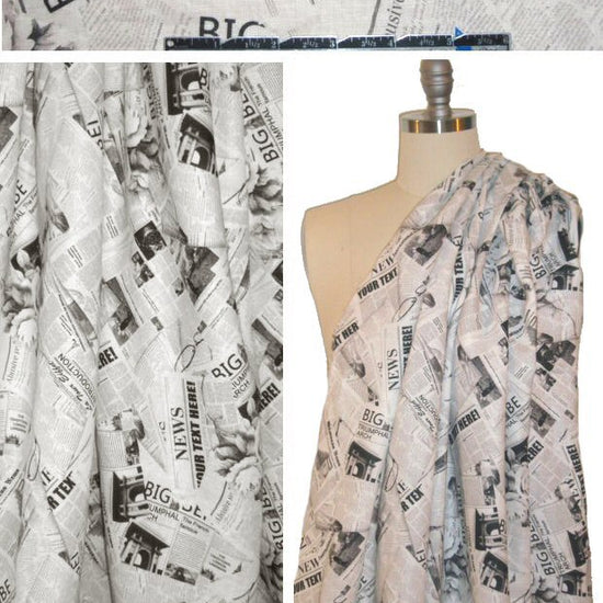 100% linen digital print - newsprint collage 1.375 yds