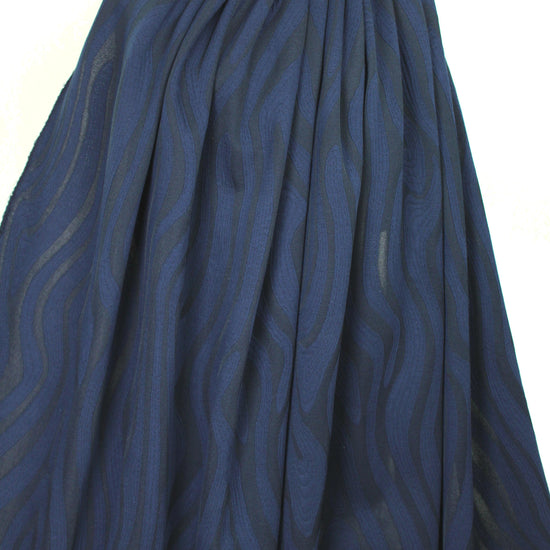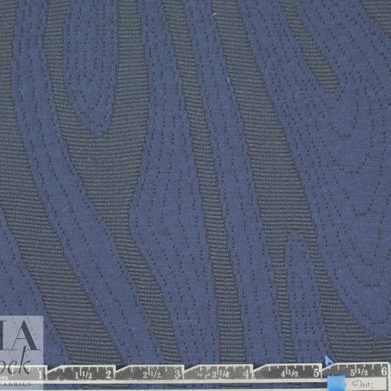 This is a wonderful and innovative Italian 2-ply doubleknit that resembles an applique' fabric! The base fabric has a thin ottoman stripe, and the "applique'" sections look like a standard jersey knit with stitches that follow the abstract shapes. The coloring is a tone on tone classic navy (PANTONE 19-3920) and the design has a 17.75" repeat. This fabric has nice drape with substance and body, perfect for a knit dress, tunic, skirt, knit suiting, etc. Test first if you wish to hand or machine wash, and hang to dry, or dry clean. LAST PIECE, 1.33 yds.
