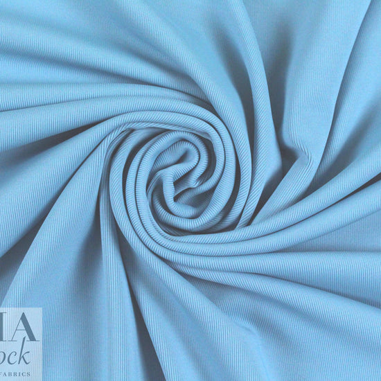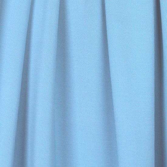 This is a wonderful interlock construction 1x1 ribbed knit from a very, very famous designer, medium-light weight with a soft drape that has some body. It has about 80% stretch in the width, 20% in the length, and it is opaque and a bit lighter in weight than the black and navy from the same designer (68907 and 68908). The color is sky (PANTONE 15.4319). Perfect for a body-con top, tunic, dress, skirt, leggings, etc. Hand or machine wash gentle, and hang to dry. 3 yds.