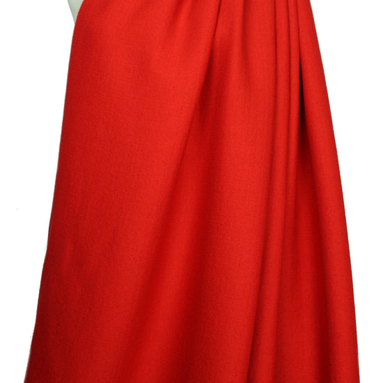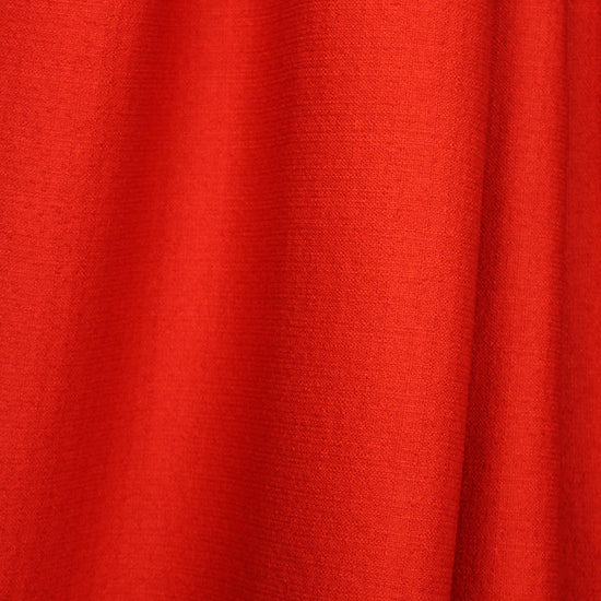 This is a wonderful textured tweed from a CA designer in a brilliant cherry red (PANTONE 17-1563). It is medium weight and opaque with some body in the drape, a tight weave, and some surface texture. A suiting weight perfect for a spring/summer Chanel-style jacket, suit, skirt, topper coat, etc. Dry clean, or test first if you wish to try another method. 1.625 yds.