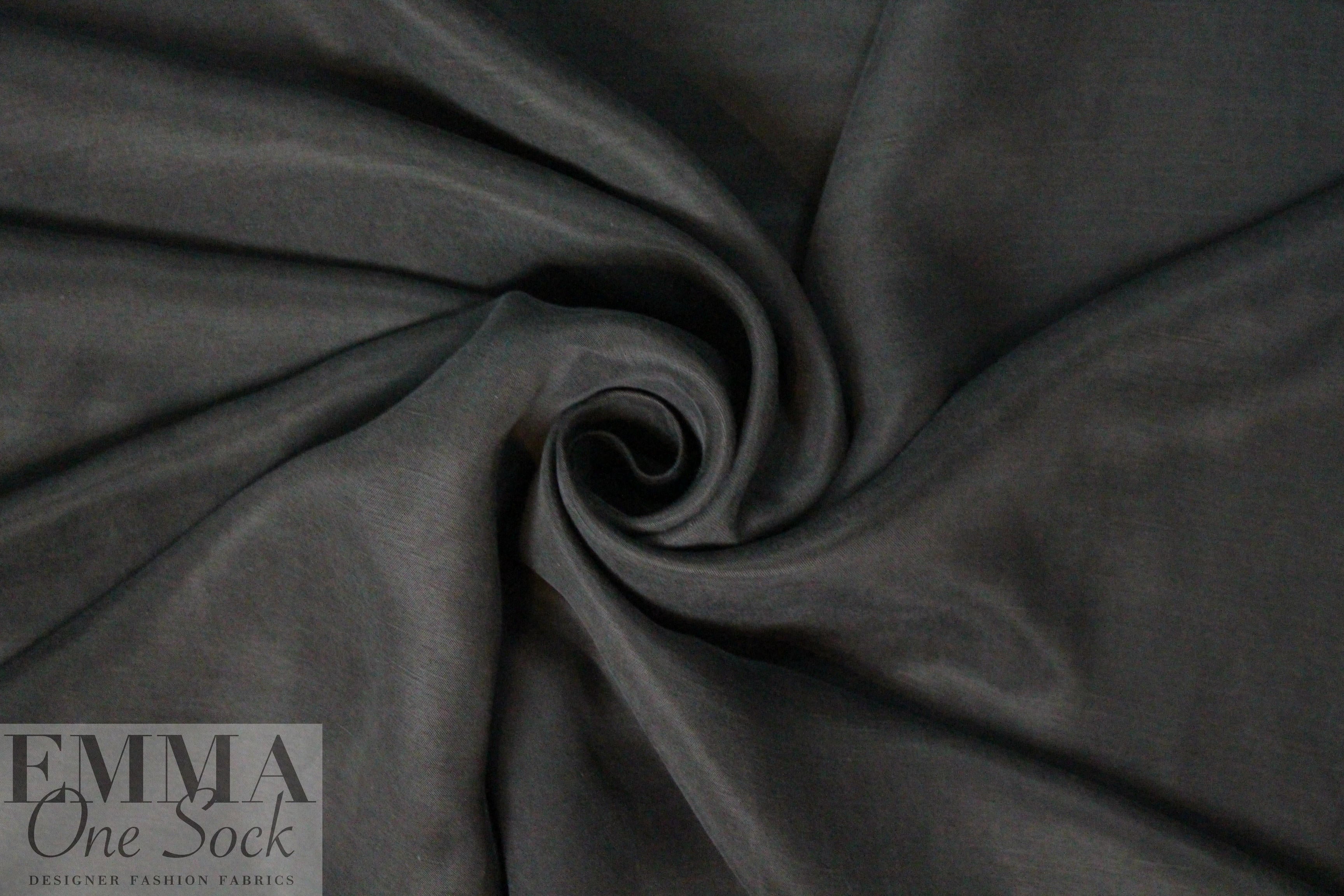 A lovely quality cupro/linen/tencel blend woven in black. It is medium-light weight and opaque with body in the drape, and has a reflective sheen on one side, a matte finish on the reverse. It is perfect for a blouse, shirt, dress, skirt, casual pants, etc. Dry cleaning or hand wash and hang to dry. END OF ROLL, .875 yds.