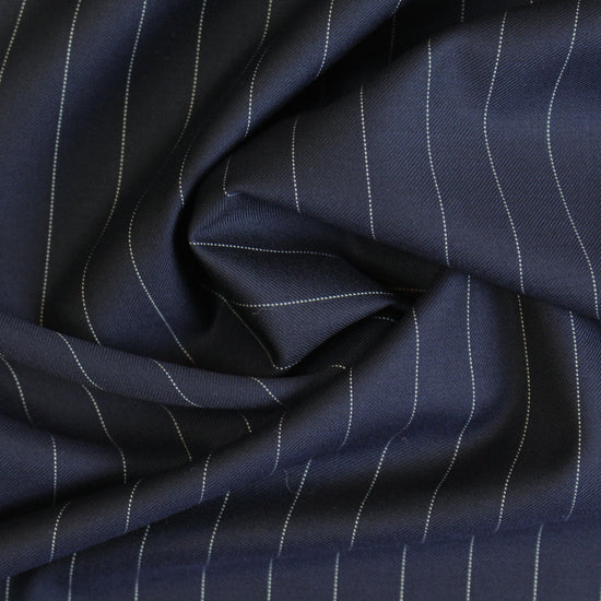 Italian wool pinstripe twill suiting - midnight/off white 1 yard