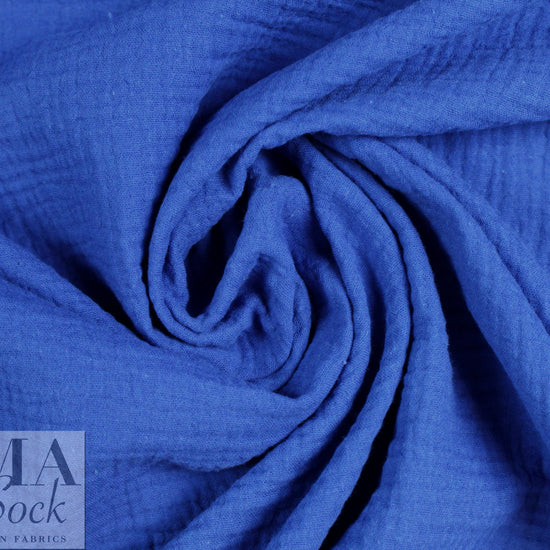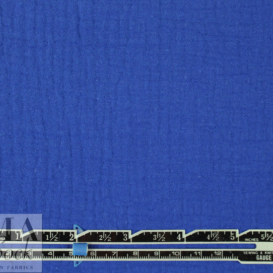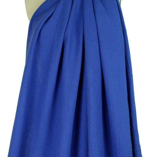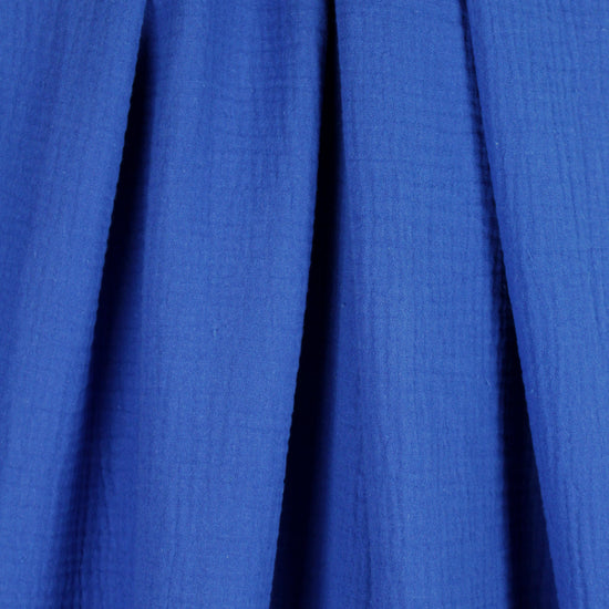 This amazing fabric is a soft and airy cotton double gauze with a pucker texture and a soft drape that has some body. The color is cobalt blue (PANTONE 18-3945 is close). Casual and medium-light weight, nearly opaque, it has a slight "puffiness" that comes from the two layers sewn together. It is perfect for a casual shirt, top, tunic, blouse, drawstring pants or shorts, beach cover-up, etc. Hand or machine wash cold, hang or lay flat to dry (please test first!), or dry clean. 1.5 yds.