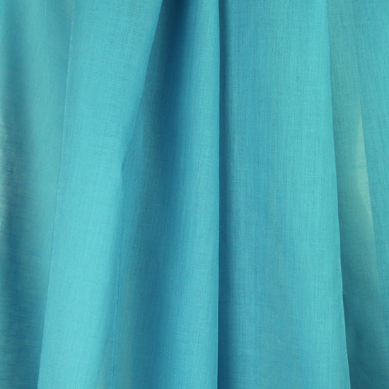 This is a lovely quality cotton lawn (sold as lawn, but maybe more like a voile), semi-sheer and lightweight with a floaty, cottony drape. The color is a wonderful aqua blue (PANTONE 15-4421). It is a perfect choice for a summery over-shirt, top, beach cover-up, breezy tunic, etc. Test first if you wish to hand wash or machine wash, and hang to dry. 1.33 yds.