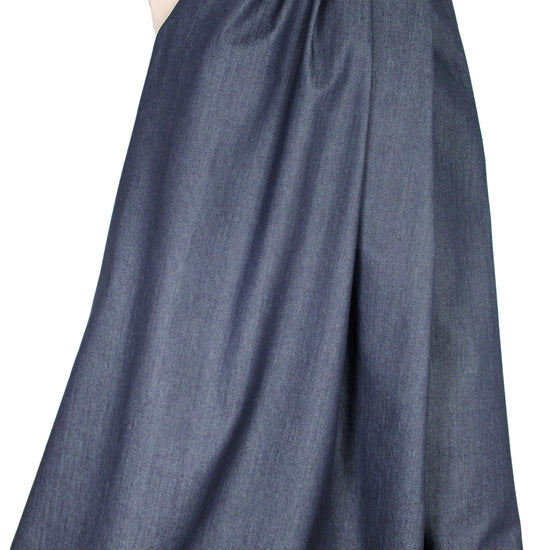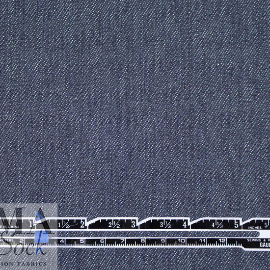 From Cone Denim, this is an excellent quality, responsibly manufactured medium weight stretch denim, suitable for all seasons! It is in its "raw" state, so, as with all denims, repeated washings are advised to achieve the look and feel you want. The color is a dark indigo with white crossthreads (PANTONE 19-3908 is close). It has a crisp yet malleable drape, and with its 10% widthwise stretch, it is perfect for jackets, topper coats and jeans. A beautiful quality basic, it is made in a state-of-the-art mill specializing in eco-friendly and sustainably produced denims. Pre-wash separately in the washing machine with a color catcher, and tumble dry, at least twice, before making your garment. 1.5 yds.