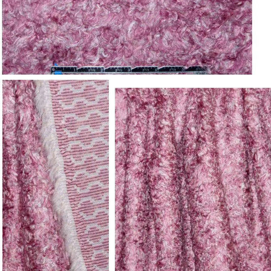How cool is this! It's a faux fur, a somewhat shaggy and slightly curly fur in a fabulous combination of light plum and silver (PANTONE 16-2111, 14-4203). It's thick, soft and cottony with some body in the drape, and it has a soft knit backing (shown below) with a bit of widthwise give, but is stable in both directions. Make a fabulous coat or jacket, or use as trim on a coat, jacket, cardigan, etc. Dry cleaning recommended.