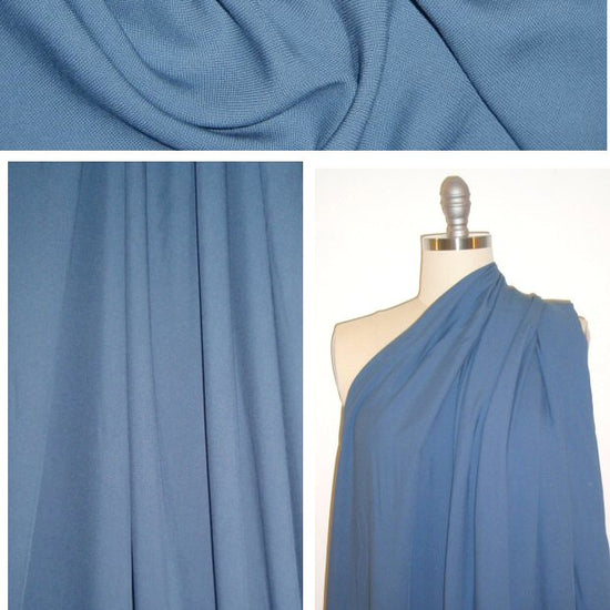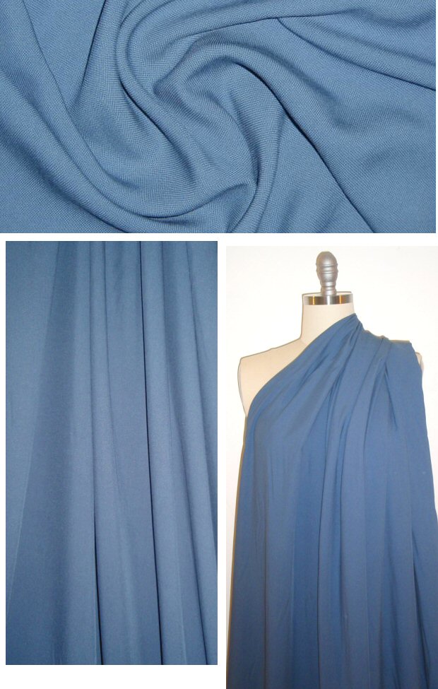 This is so wonderful! ...a micro-pique'-textured drapey viscose woven, medium-light weight and opaque. The weight is so versatile, use for any number of elegant and drapey tops or bottoms that can be dressed up or down. It's a fabulous basic in pretty china blue (PANTONE 18-3918). The manufacturer recommends hand or machine wash, gentle, and hang to dry (please test first).