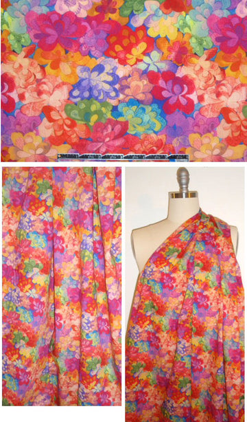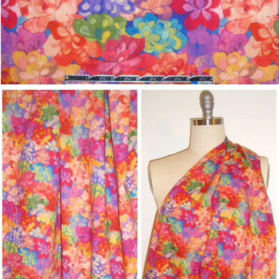 From the new Fall 2015 collection of Liberty Art Fabrics (formerly Liberty of London), this is a Tana lawn weight cotton print, imported from England. The print is called 'Emerald Bay', and features a stylized floral design (8" repeat) in vivid shades of red, pink, spice, cobalt, green, violet, fuschia, etc. (PANTONE 18-1856, 15-1164, 17-3323, 19-4039, etc.). The cloth is an exquisite quality cotton lawn, lightweight, semi-opaque, soft with cottony drape, and the print has much more clarity and beauty in real life. (Some prints are directional, some of the drapey photos show the print upside down due to the way it comes off the roll.) For blouses, shirts, dresses, skirts, etc! Hand wash cold, hang to dry (please test first).