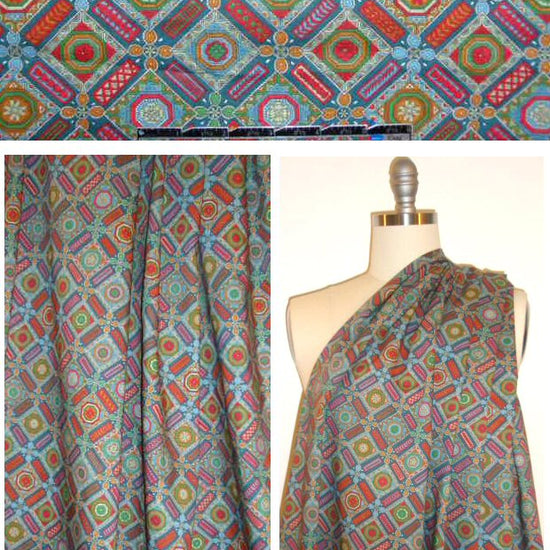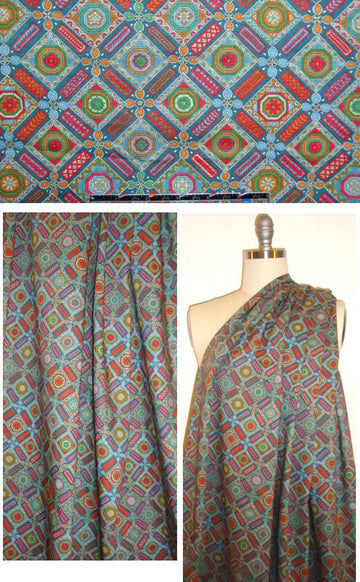 From the new Fall 2015 collection of Liberty Art Fabrics (formerly Liberty of London), this is a Tana lawn weight cotton print, imported from England. The print is called 'Benjamin', and features a graphic medallion design (8.25" repeat) in tones of red, green, mallard, dijon, dusty blue, sage and white (PANTONE 18-1664, 18-4718, 15-4319, etc.). The cloth is an exquisite quality cotton lawn, lightweight, semi-opaque, soft with cottony drape, and the print has much more clarity and beauty in real life. (Some prints are directional, some of the drapey photos show the print upside down due to the way it comes off the roll.) For blouses, shirts, dresses, skirts, etc! Hand wash cold, hang to dry (please test first).