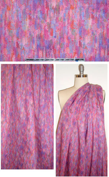 From the new Fall 2015 collection of Liberty Art Fabrics (formerly Liberty of London), this is a Tana lawn weight cotton print, imported from England. The print is called 'Polly Genevieve', and features a painterly, dotty abstract design (6.25" repeat) in tones of red, pink, fuschia, fern, periwinkle, etc. (PANTONE 17-1564, 15-1920, 17-3934, etc.). The cloth is an exquisite quality cotton lawn, lightweight, semi-opaque, soft with cottony drape, and the print has much more clarity and beauty in real life. (Some prints are directional, some of the drapey photos show the print upside down due to the way it comes off the roll.) For blouses, shirts, dresses, skirts, etc! Hand wash cold, hang to dry (please test first).