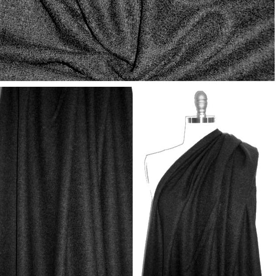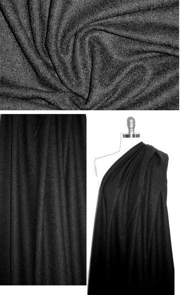 Simply fabulous!! This is an all-wool boucle' woven from a designer, in a classic jet black. It's a medium suiting weight woven with a very low pile boucle' texture, and it has lovely drape with body. It is identical on both sides, and the weave is just the slightest bit open for an almost handwoven look. Perfect for all kinds of jackets, a suit, sheath dress, skirt, etc. It can be fringed if desired. Easily combine drapey and more structured details with this versatile beauty! Dry cleaning recommended.