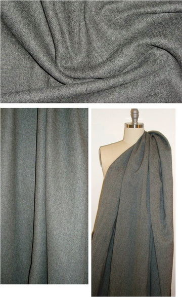 From a group of wools and cashmeres that I imported from Italy recently, this one is a stunning virgin wool and cashmere blend doublecloth in a slightly tweedy graphite gray (PANTONE 18-0403 is close). It is a medium weight coating with a somewhat rustic weave, and body in the drape. The layers are sewn together and pull apart easily, and the fabric is substantial but not weighty. It is perfect weight for fall/winter jacket or coat, vest, cape, etc. Dry cleaning is recommended.