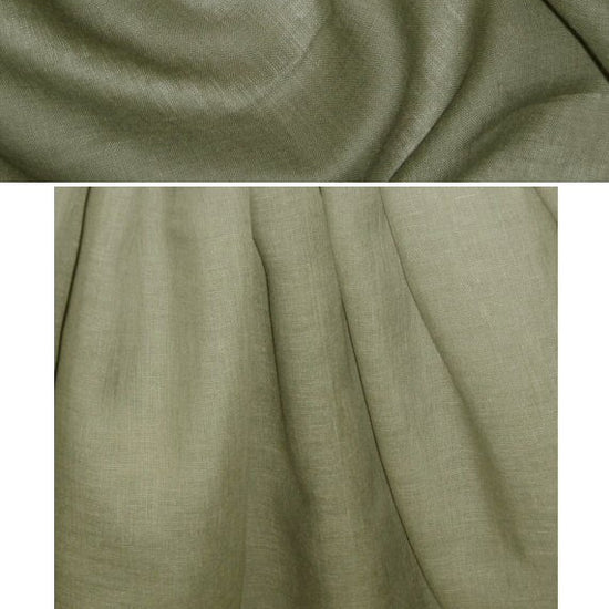 This is a lovely quality, light weight linen from Ann Taylor. The color is a lovely loden green (PANTONE somewhere between 17-6206 and 17-0517). Just a little bit sheer with a soft drapewith a bit of crispness to it. Perfect for any number of linen coordinates, shirts, tops, skirt, dress, etc. Bottoms should be lined. Dry clean to preserve crispness, or machine wash, gentle and hang to dry to soften the texture.