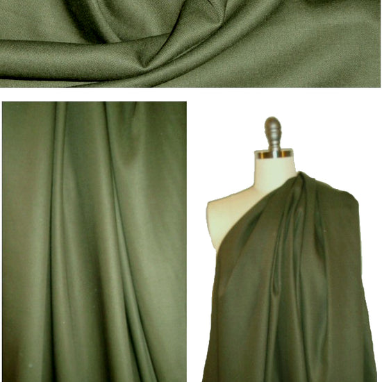 This is a beautiful quality 100% viscose rayon Italian gabardine in a pretty loden green (PANTONE 18-0422 is close), opaque and medium weight with lovely drape and body, a twill weave that is perfect for suits, slacks, skirt, sheath dress, jacket, etc. A great classic at a great price! Dry cleaning recommended.