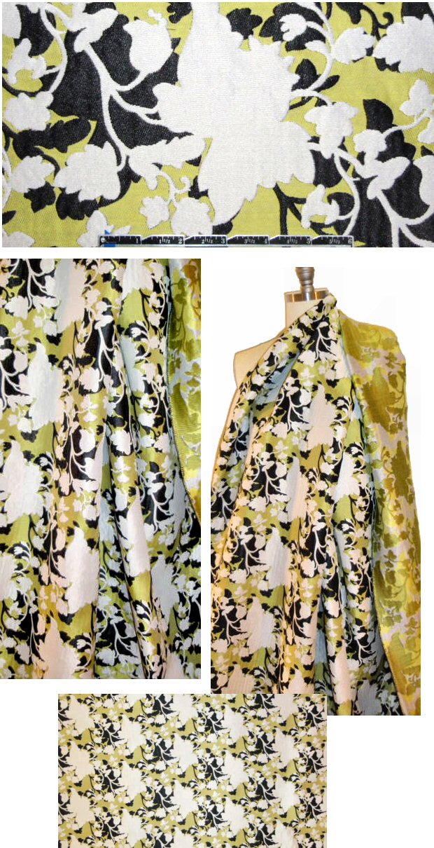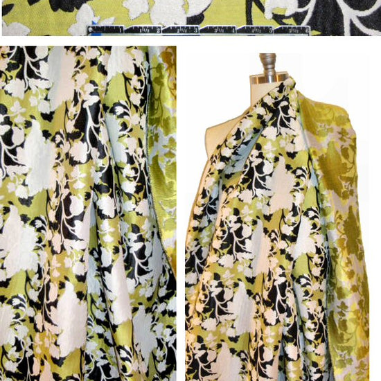 famous designer stylized floral jacquard brocade - lime 1.625 yds