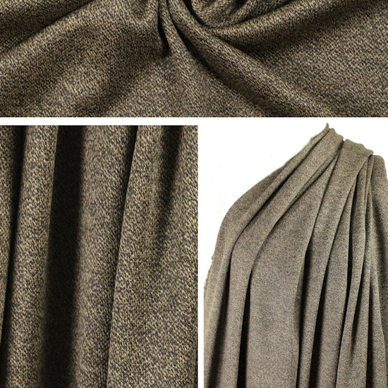 This is a wonderful all merino wool sweater knit just in from The0ry, a medium weight and opaque knit with a very soft and refined texture. It has some body in the drape and is a great casual fall/winter sweater knit that has about 50% stretch in the width and is stable in the length. The colors are chocolate brown and camel (PANTONE 19-1420, 16-1210...ish) in a tweedy melange. Make a cardigan, sweater jacket or coat, scarf/hat/mittens, sweater dress, skirt or tunic, etc. Dry clean, or treat as you would any fine sweater knit.