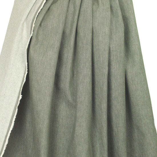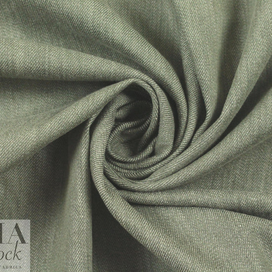 This is a wonderful Italian enzyme wash stretch denim in a sage heather color (PANTONE 16-6008-ish). To quote from the Tellason denim dictionary: "Enzyme wash is a process that gives denim a softer and worn-in look by breaking down the cellulose molecules naturally found in indigo dyes. Enzyme washing is also more ecologically friendly due to the natural origins of enzymes, which biodegrade rather than linger in the water supply." It is a medium-weight denim with about 25% stretch in the width only. Gorgeous quality and true to the above description. Perfect for jeans, jacket, skirt, vest, etc. Pre-wash as you will want to wash your garment, and please test first.