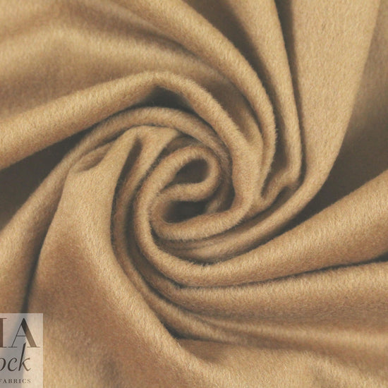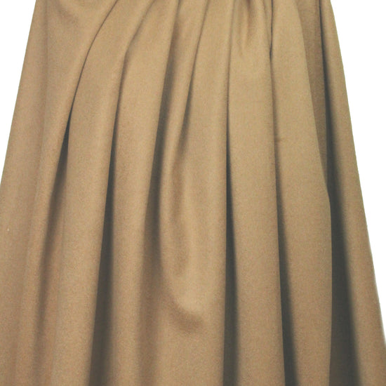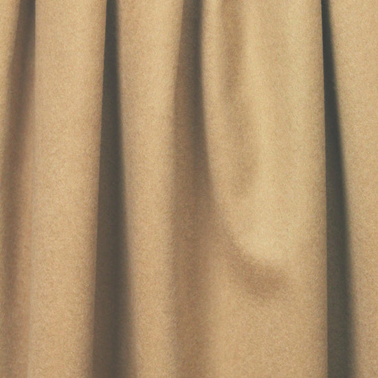 This gorgeous luxury medium weight coating fabric is a wool and viscose blend, combining wool yarns from Australian and New Zealand with viscose fibers that add durability. It feels like cashmere with a wonderfully soft hand, and the drape is soft with some body. The color is a classic camel (PANTONE 17-1328 is close). It has a nap so should be cut all in the same direction. Make a gorgeous coat or jacket that you will cherish for years! Dry cleaning recommended.