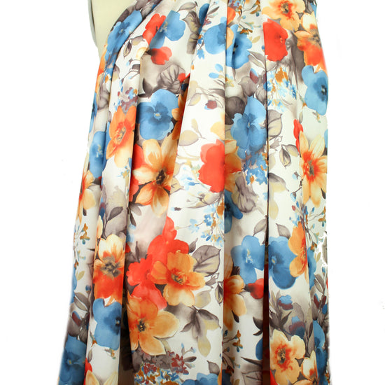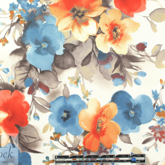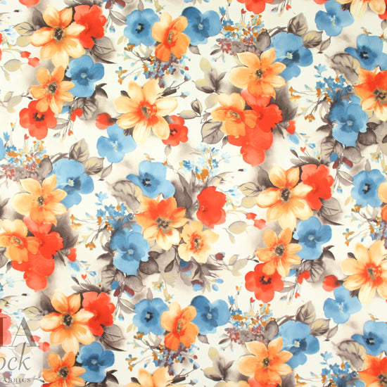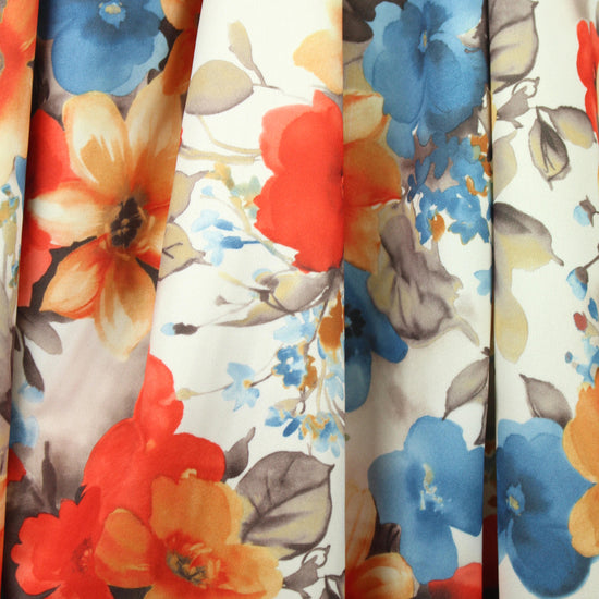 This microfiber stretch doubleknit, better known as "scuba" or "neoprene", has a matte finish and a soft drape with some body (on the spectrum of scuba knits, which are not all created equal, this one has a softer drape). It has about 50% widthwise stretch, is stable lengthwise, and the print is a lovely "vintage garden" design in shades of teal, bittersweet, mocha, etc. on a creamy white background (PANTONE 18-4036, 17-1456, 17-1210, etc.). Perfect for a sheath dress, fitted skirt or jacket, tunic, etc. Hand or machine wash or dry clean.