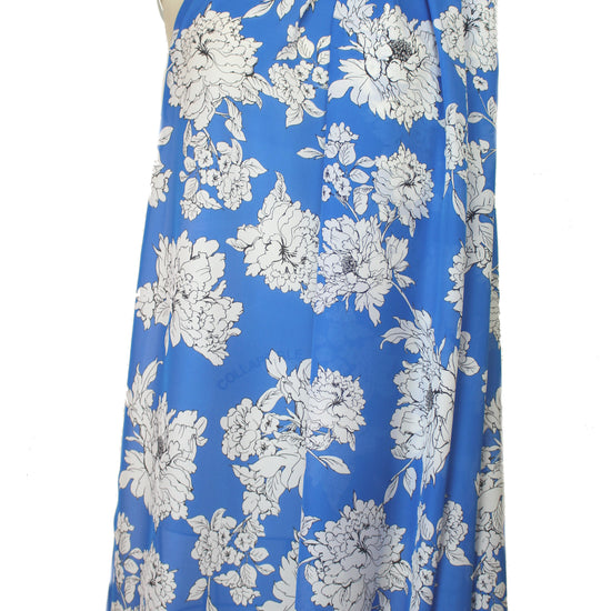 Mi11y blue background floral silk georgette 1.25 yds
