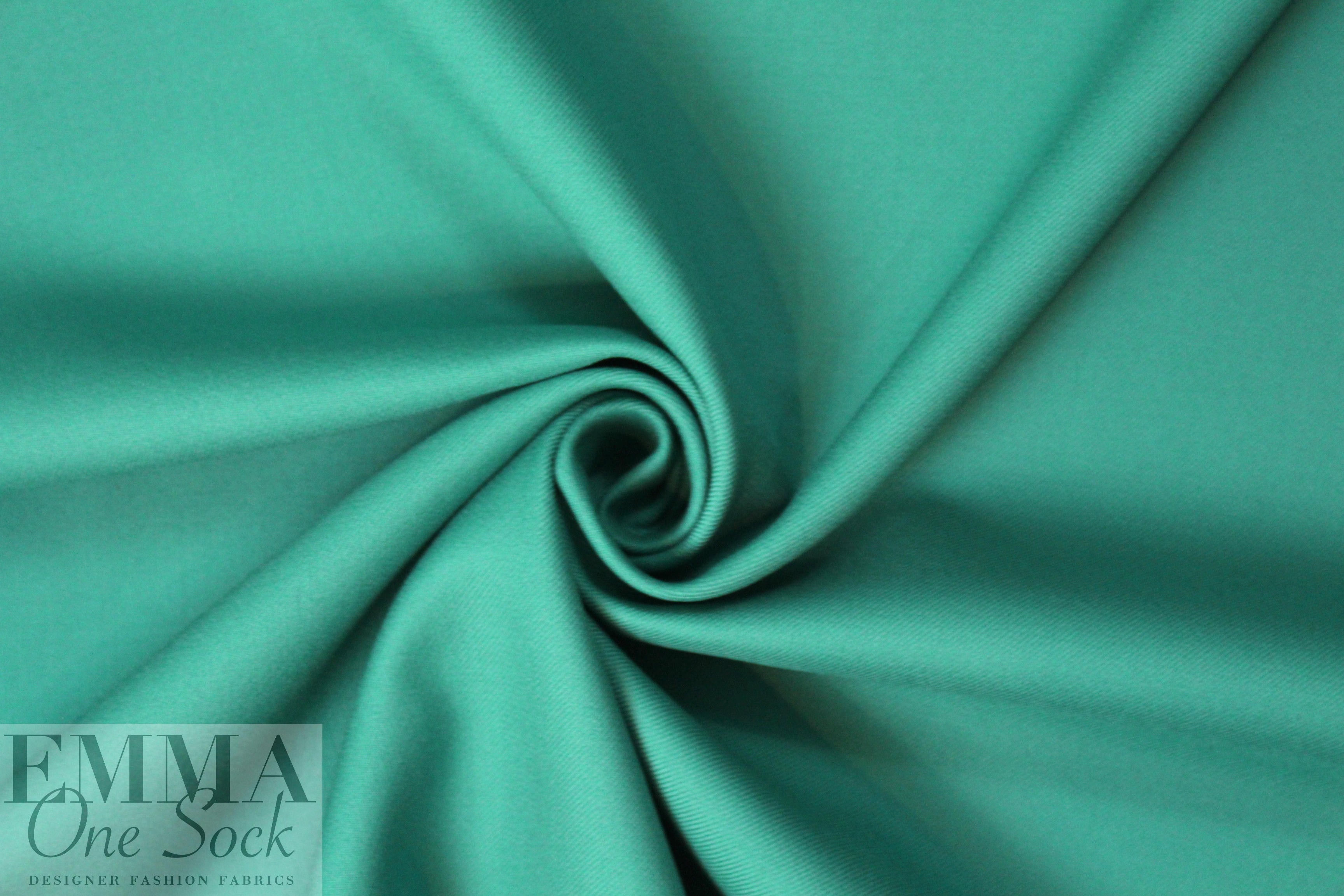 This gorgeous quality Piacenza yarn-dyed, virgin wool doublecloth twill woven comes from a very famous designer, and is a suiting weight with a refined hand, a twill weave, and some body in the drape. Medium-weight, opaque, wrinkle-free and the same on both sides. It is a true doublecloth and the layers are sewn together---they pull apart beautifully. The color is spearmint (PANTONE 16-5412 is close). Perfect for elegant suiting, a topper coat or jacket, pencil skirt, etc. Dry cleaning is best. If you wish to try hand wash and hang to dry please test first. 1.75 yds.