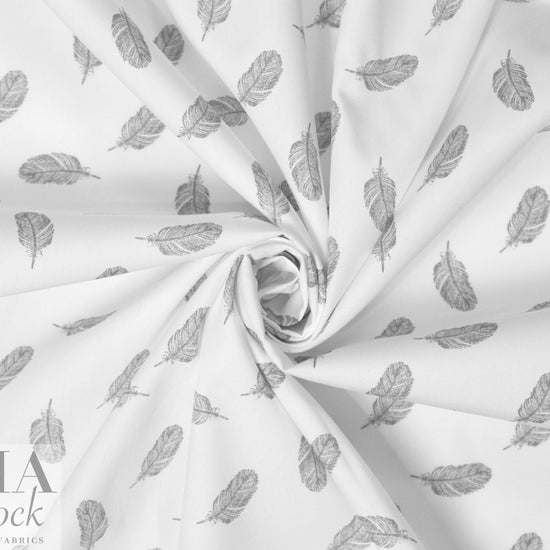 Dutch digital feathers cotton poplin - gray on white 1.75 yd