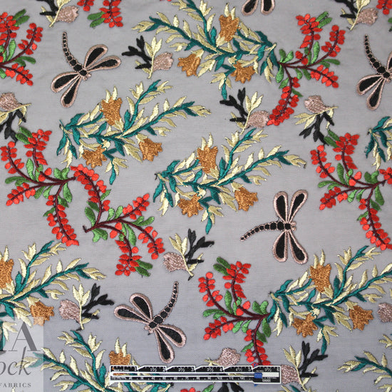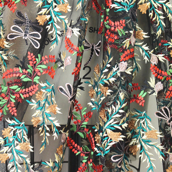 dragonfly floral embroidered sheer mesh 1.75 yds