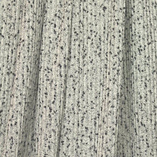 This is a wonderful quality, super wide ribbed sweater knit from a NY designer, in a lovely salt and pepper coloring. It is a versatile medium weight, opaque with a soft drape and 85% widthwise, 20% lengthwise stretch with great recovery. Both sides look exactly the same, and the fabric is wonderfully soft and cozy. It is perfect for cardigans, turtlenecks, slouchy tunics, sweater dress, pullover, etc. Hand wash (machine wash probably OK but please test first), and lay flat to dry. .75 yds.