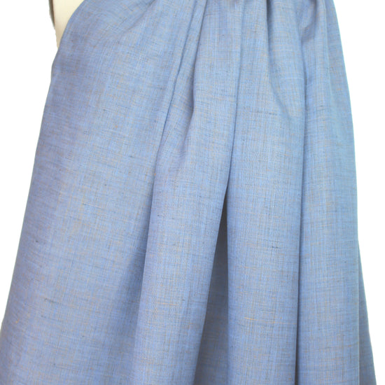 This is a beautiful quality European cross dye linen in a cornflower blue with dusty peach weft fibers (PANTONE 16-4031, 15-1231) giving it an overall impression of a citrus-y mix of the two colors. It is a dress weight woven with some crispness in the drape, opaque, and suitable for an overshirt, dress, tunic, pants, airy summer separates, etc. Dry clean or test first if you want to try hand or machine washing. Lay flat or hang to dry. 1.125 yds.