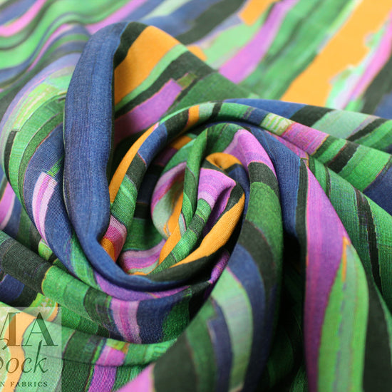 Italian vivid painterly stripes viscose crepe
