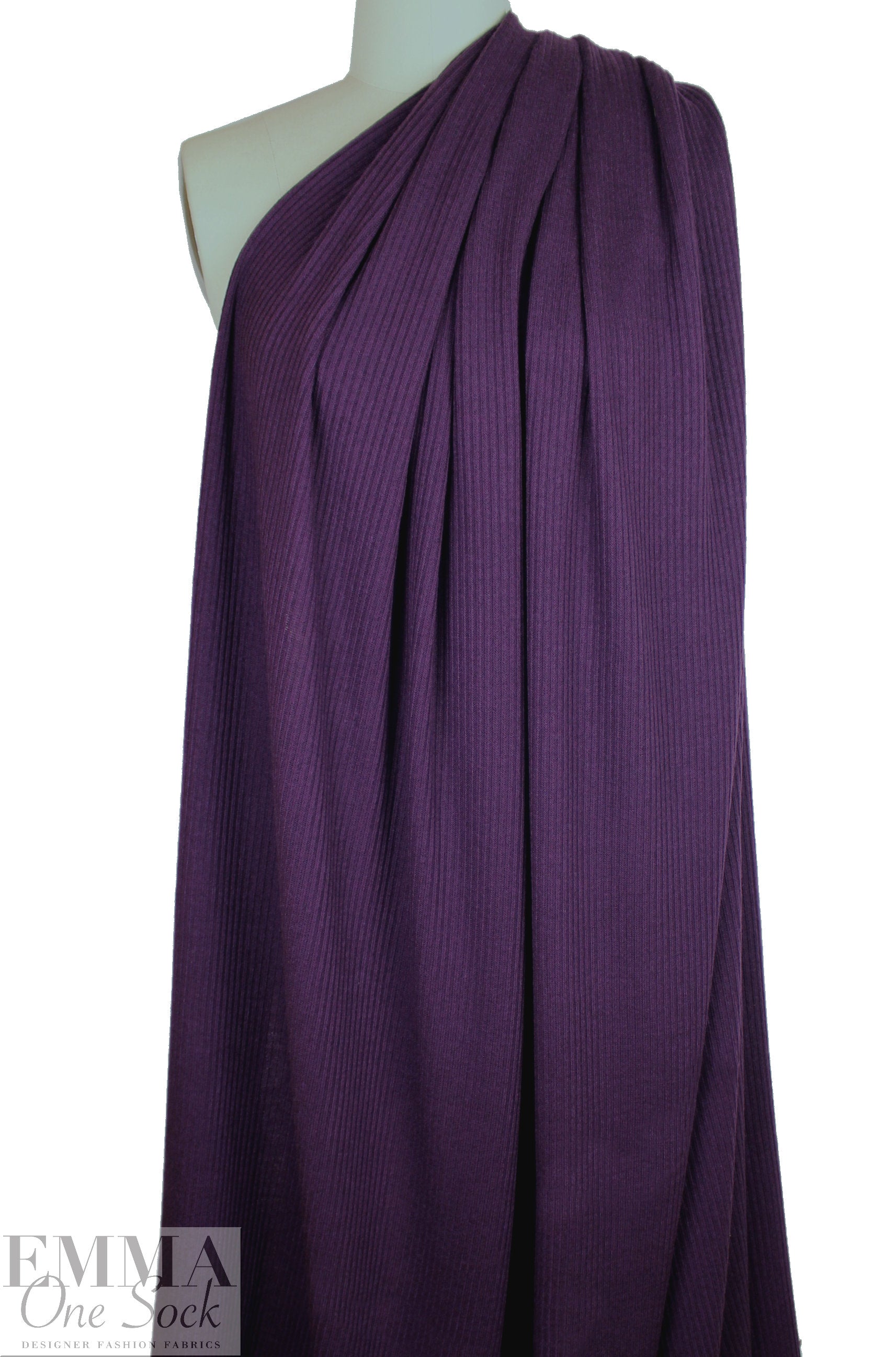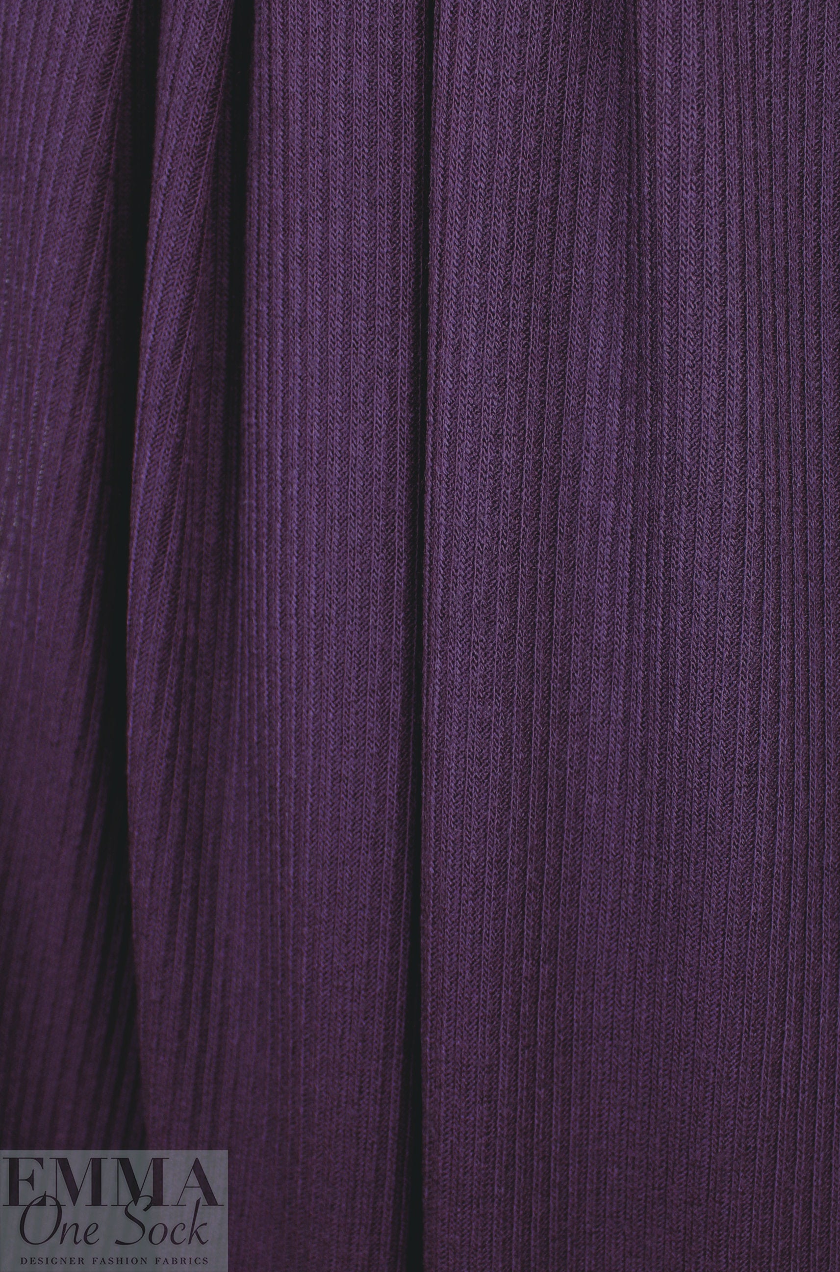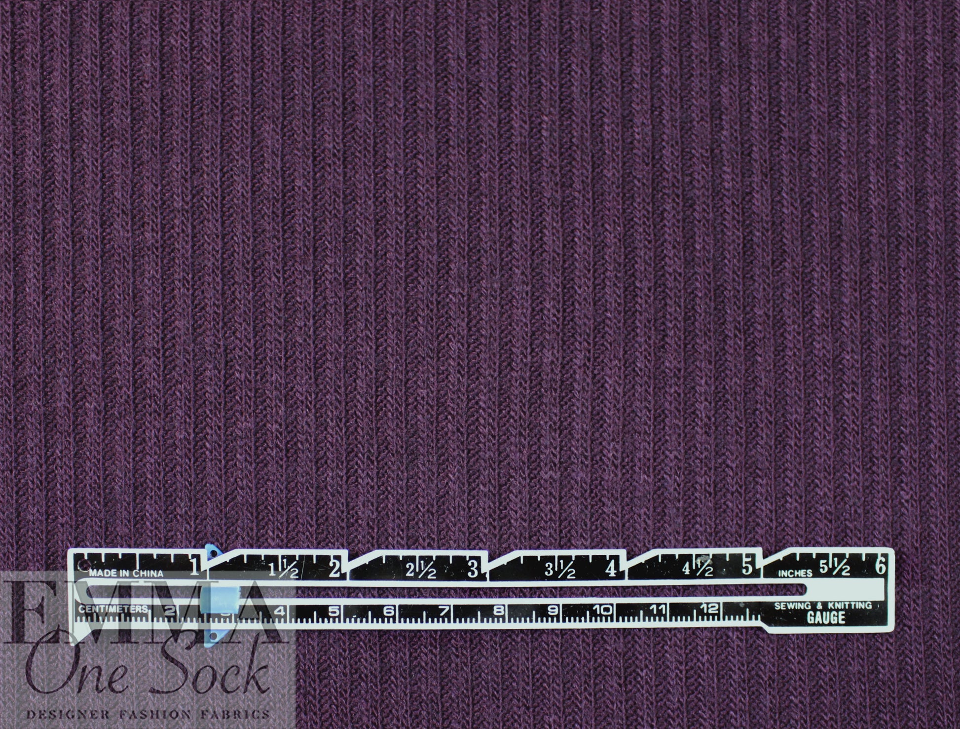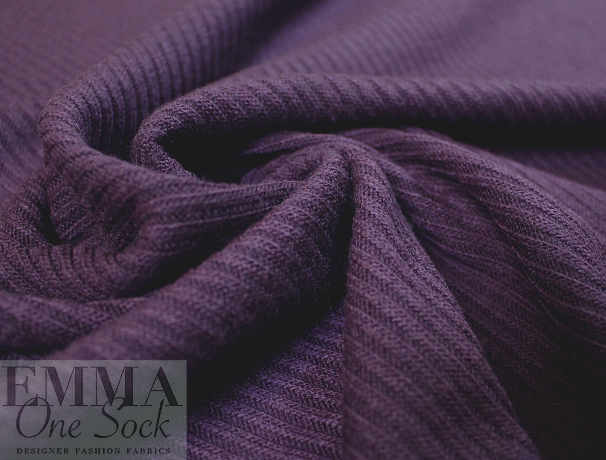 From a NY designer, this is a super soft and drapey 2x2 ribbed sweater knit, medium-light weight yet nearly opaque with a soft texture. It has about 50% horizontal stretch with a nice springback. According to a burn test it does seem to have a small amount of wool. The color is a beautiful elderberry tone (PANTONE 19-3520), and it is perfect for tops, tunics, cardigan, soft ribbing for cuffs, hems and necklines, lounge wear, etc. Both sides look the same. Test first: Hand wash and lay flat to dry.