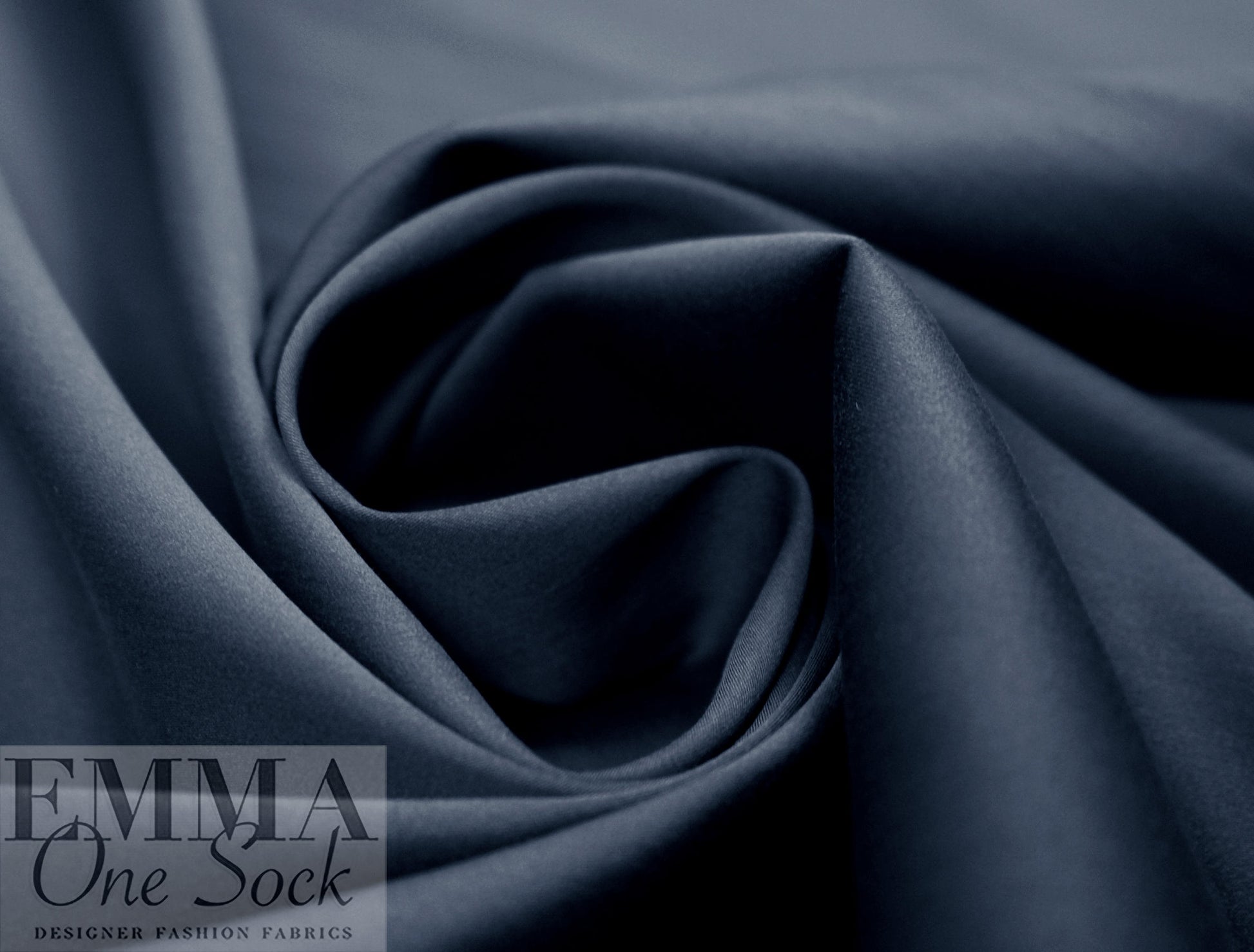 This is a wonderful cotton/nylon stretch poplin shirting in marine blue (PANTONE 19-4019). It has a cottony crispness with 20% stretch in the width only. Opaque and light weight, it is perfect for any season tailored shirts, tunic shirts, a summery dress or skirt, etc. It has matte finish, a tight weave and a smooth texture. Gorgeous quality! Hand or machine wash, and hang to dry, dry clean.