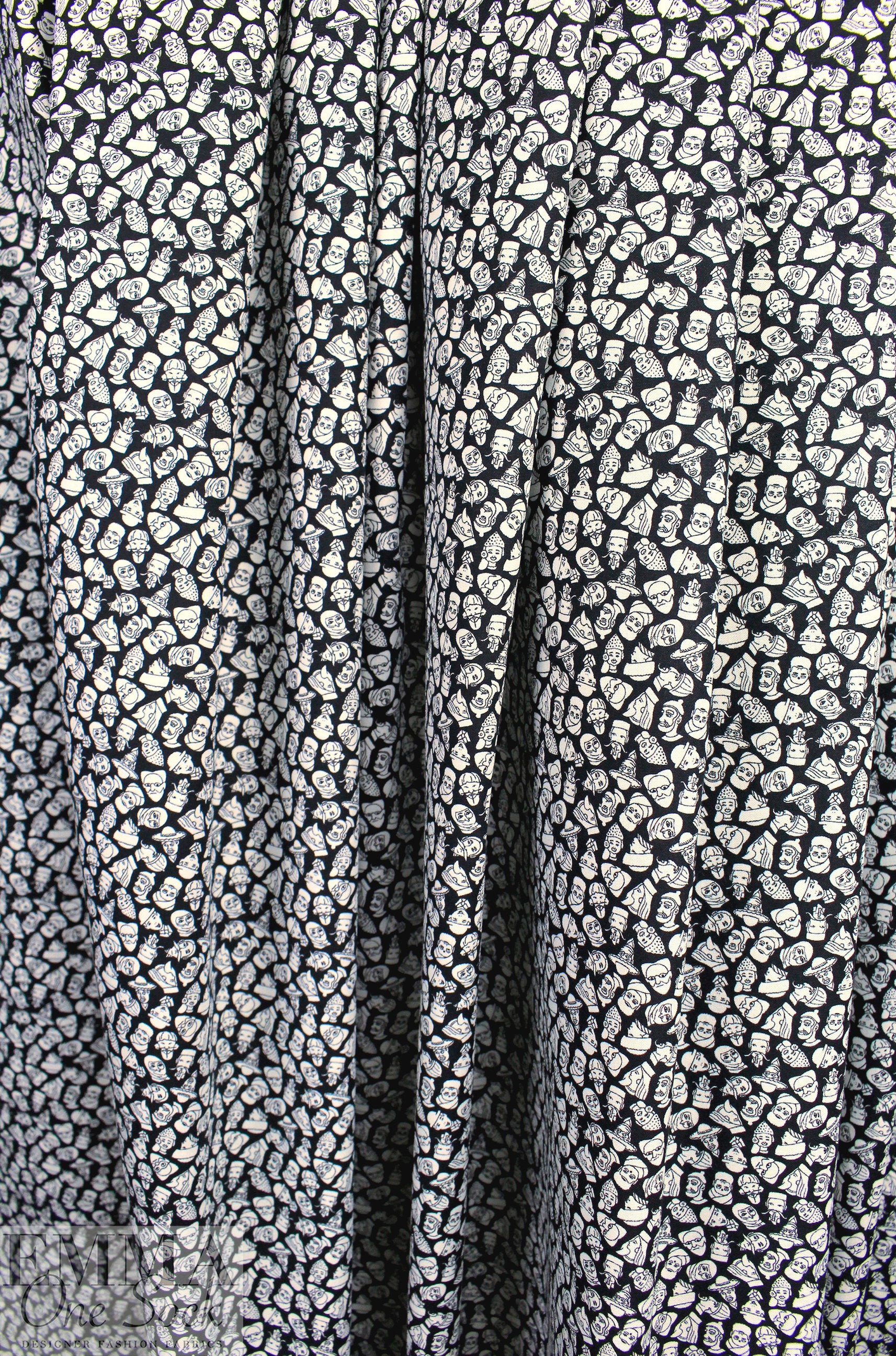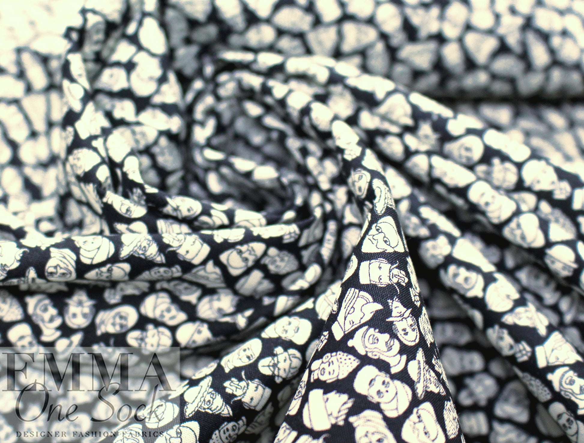 This is a wonderful Italian cotton/spandex stretch shirting from Massim0 Dutti, lightweight and opaque with some cottony body in the drape and about 10% widthwise stretch. The "iconic figures" design (1.75" repeat) features black and natural white. For gender neutral shirts, tunics, tops, dresses, skirts, boxers, etc! Hand or machine wash cold, separately, hang to dry (please test first).