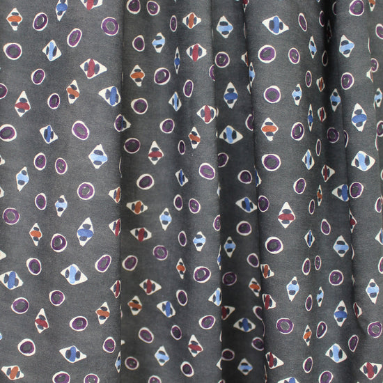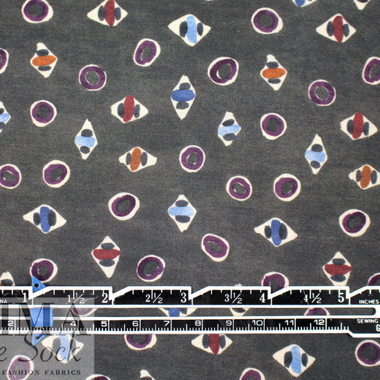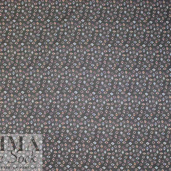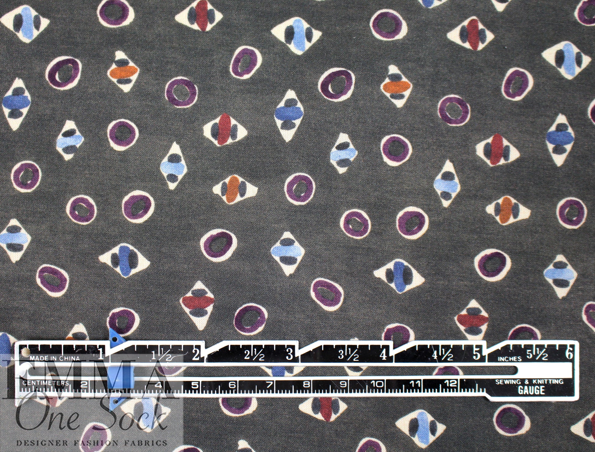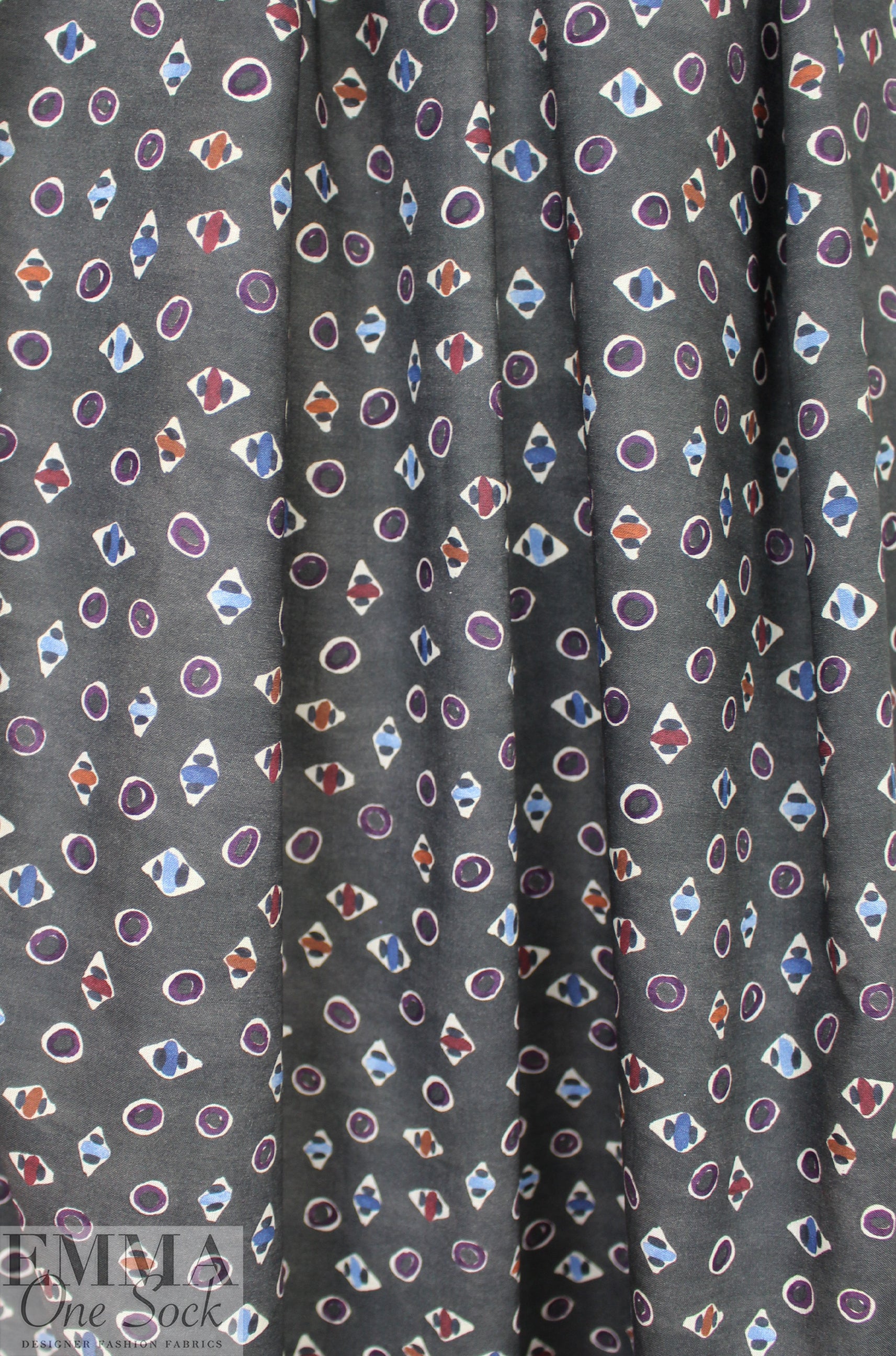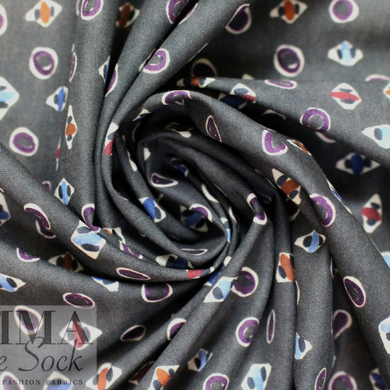 Just in with a shipment from Italian mills, this is a fabulous designer Italian cotton woven shirting, light weight yet opaque, smooth and refined with some cottony crispness in the drape. The "tiny trinkets" print (8" repeat) features shades of nutmeg, raisin, denim and off white on a gunmetal gray background (PANTONE 19-3323, 16-4020, 18-1425, 18-5203). It is perfect for a men's or ladies' shirt, tunic, etc. Hand or machine wash gentle, and hang to dry (please test first), or dry clean.
